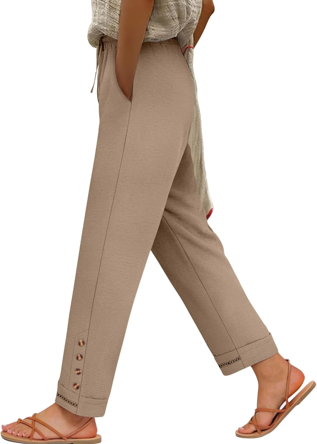 ANRABESS Womens Casual Cropped Pants Drawstring Elastic Waist 2026 Summer Loose Ankle Work Trousers with Pockets
