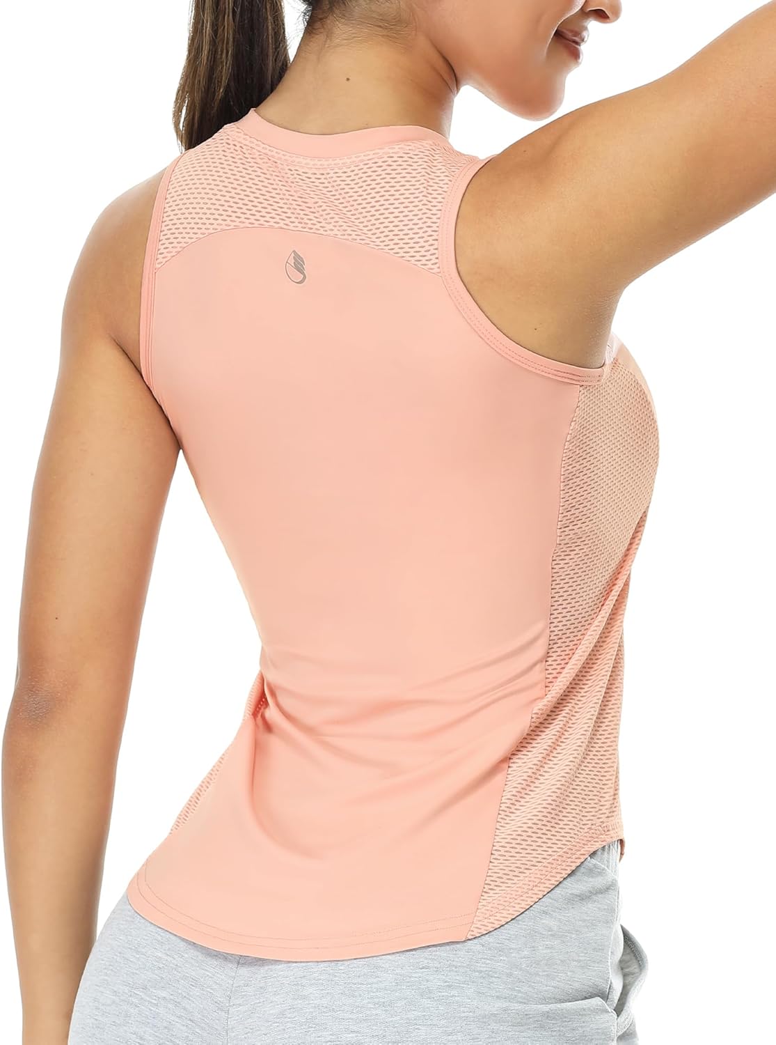 icyzone Workout Tank Top for Women High Neck Sleeveless Tops Quick Dry Athletic Yoga Exercise Running Shirts