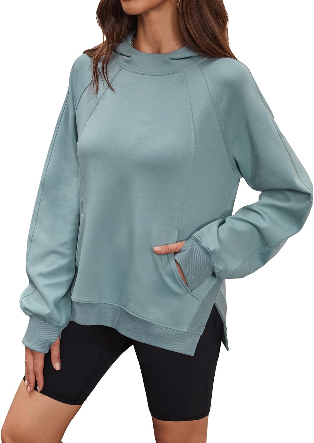 DJT Womens Hoodies Funnel Neck Long Sleeve Side Slit Pullover Sweatshirts with Pocket 2025 Fall Fashion Outfits