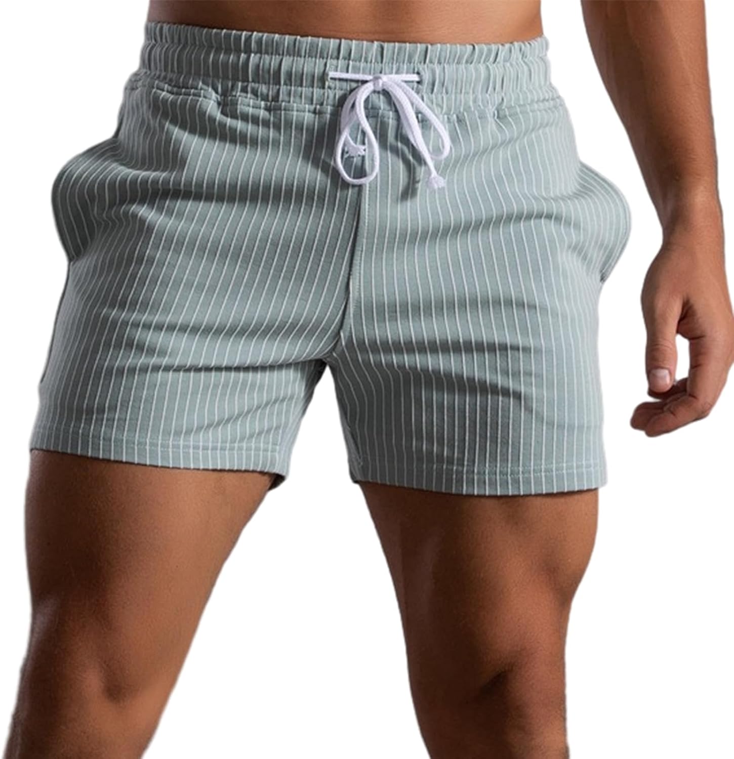Mens Shorts 5" Casual Summer Stripes Elastic Waist Classic Fit Daily Wear Jogger Workout Cotton Shorts