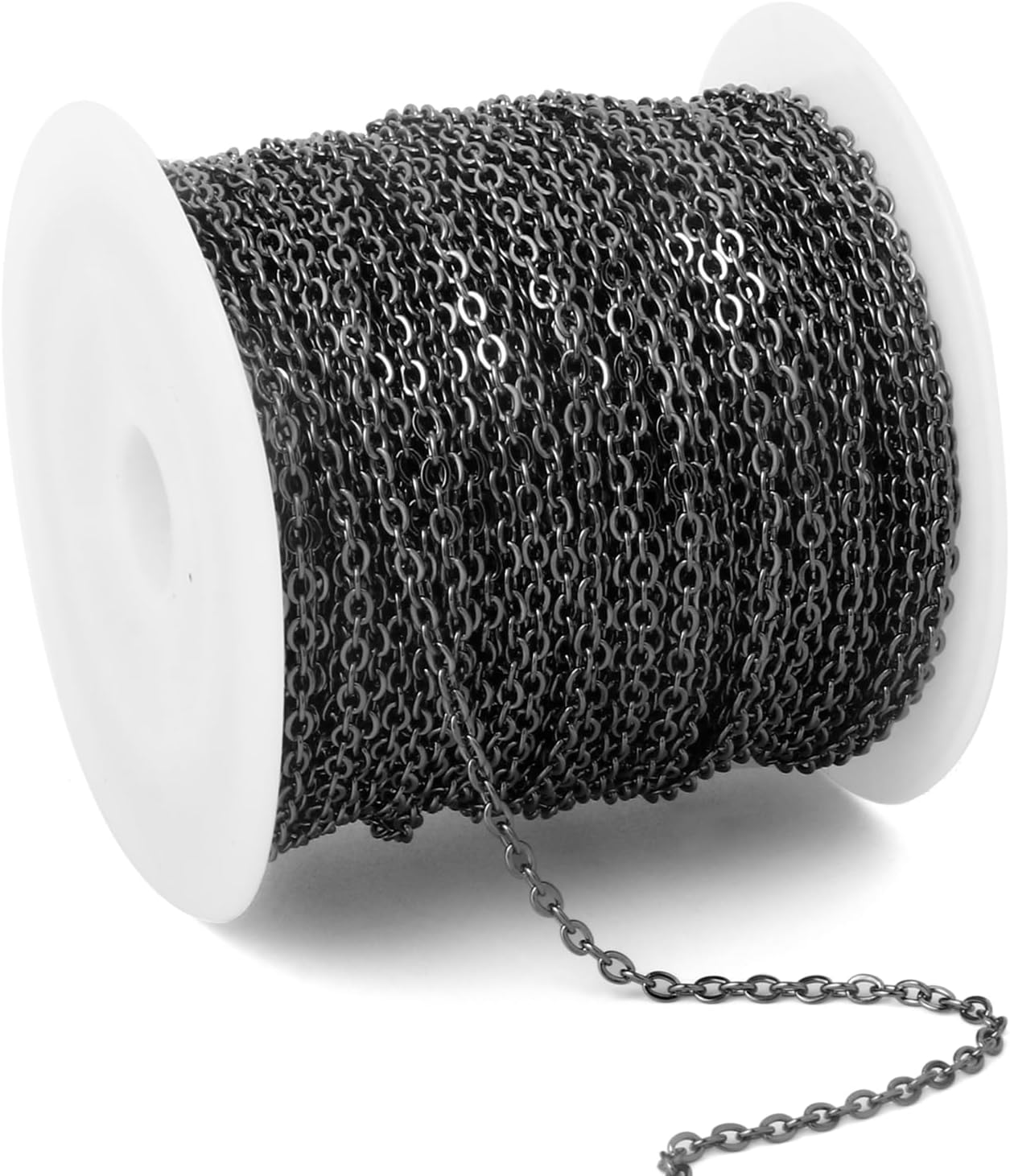 66 Feet Gunmetal Stainless Steel Cable Chains Bulk, 2.5 mm 304 Stainless Steel Black Flat Cable Links Chain Roll Spool for Jewelry Making DIY Craft