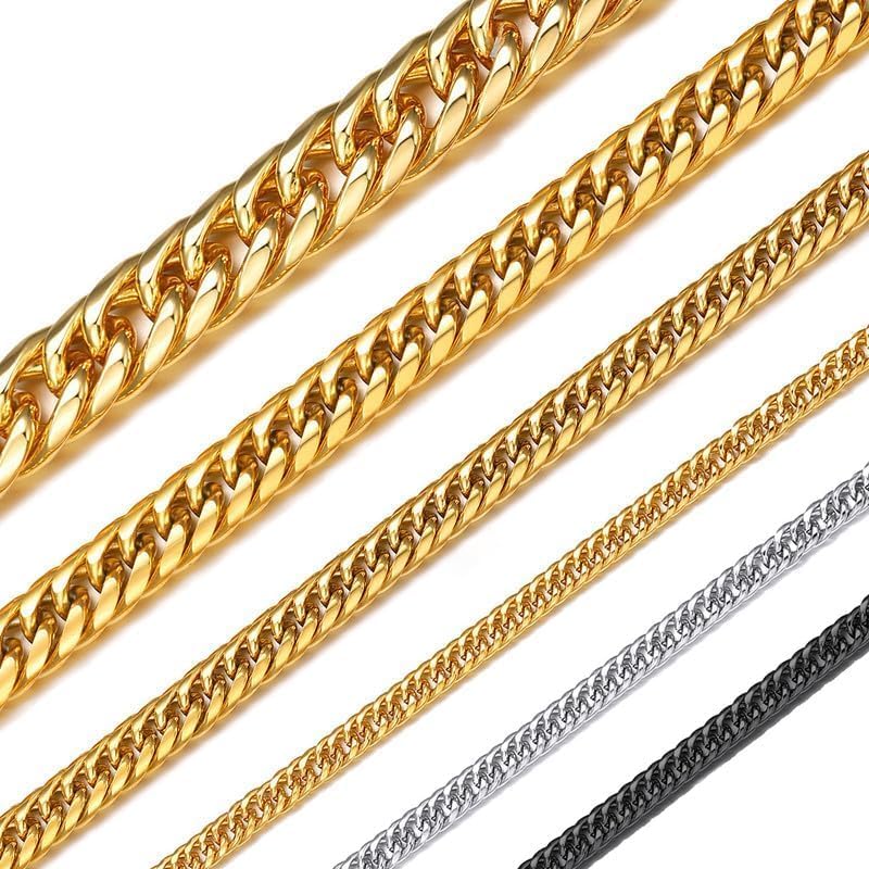 ChainsHouse Cuban Link Chain for Men Women, Hip Hop Jewelry Stainless Steel/Black/14K Gold Plated Chains,3.5/6/9/12mm Width, 18-36 Inches Options (Send Gift Box)