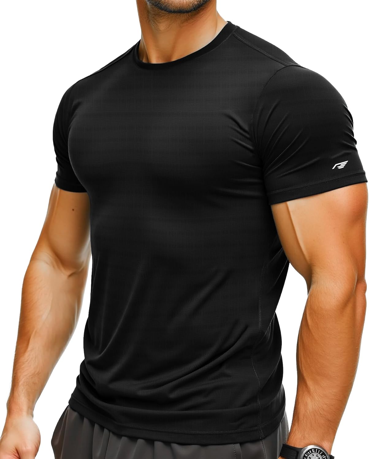 Mens Running Shirt Quick Dry Fit Short Sleeve Performance T-Shirt Moisture Wicking Ourdoor Active Wear Reflective
