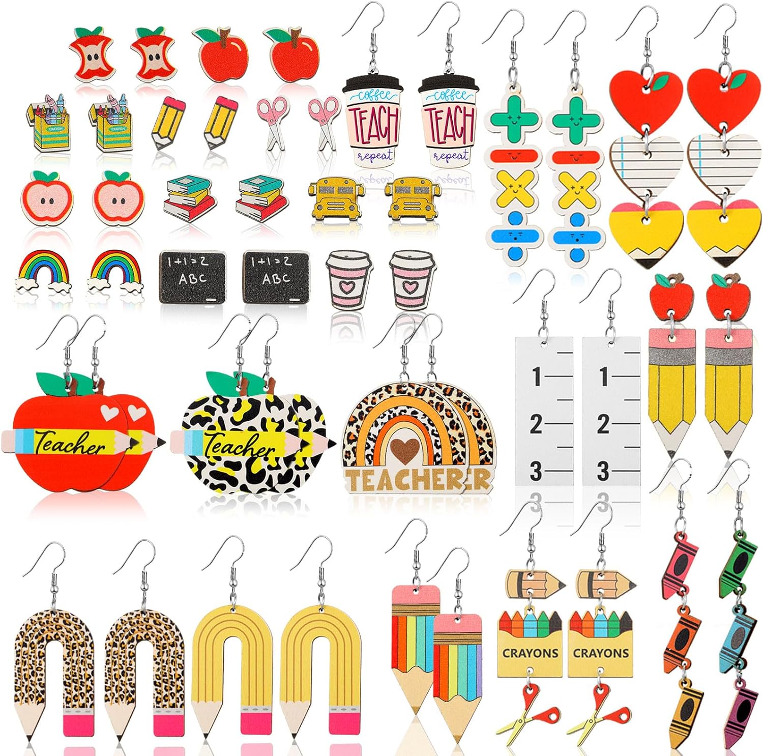 24 Pairs Teacher Earrings Appreciation Teacher Gifts Acrylic Studs Colorful Spring Pencil Apple Rainbow Shaped Dangle Earrings Lightweight Valentines Gift for Women