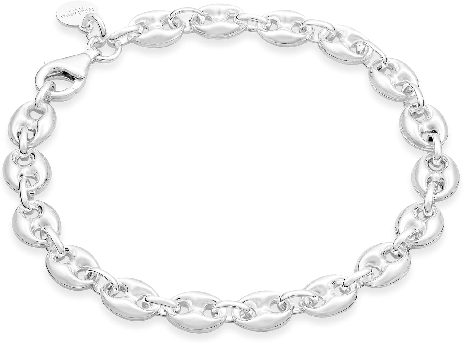 Miabella Italian 925 Sterling Silver Puffy Mariner Link Chain Bracelet for Women, Made in Italy