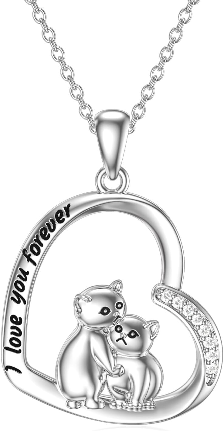 Diamond Black Cat Necklace for Women 925 Sterling Silver Cat on Moon Necklace Pendant Black Cat Jewelry Gifts for Women Mom Wife Girlfriend Daughter Girls