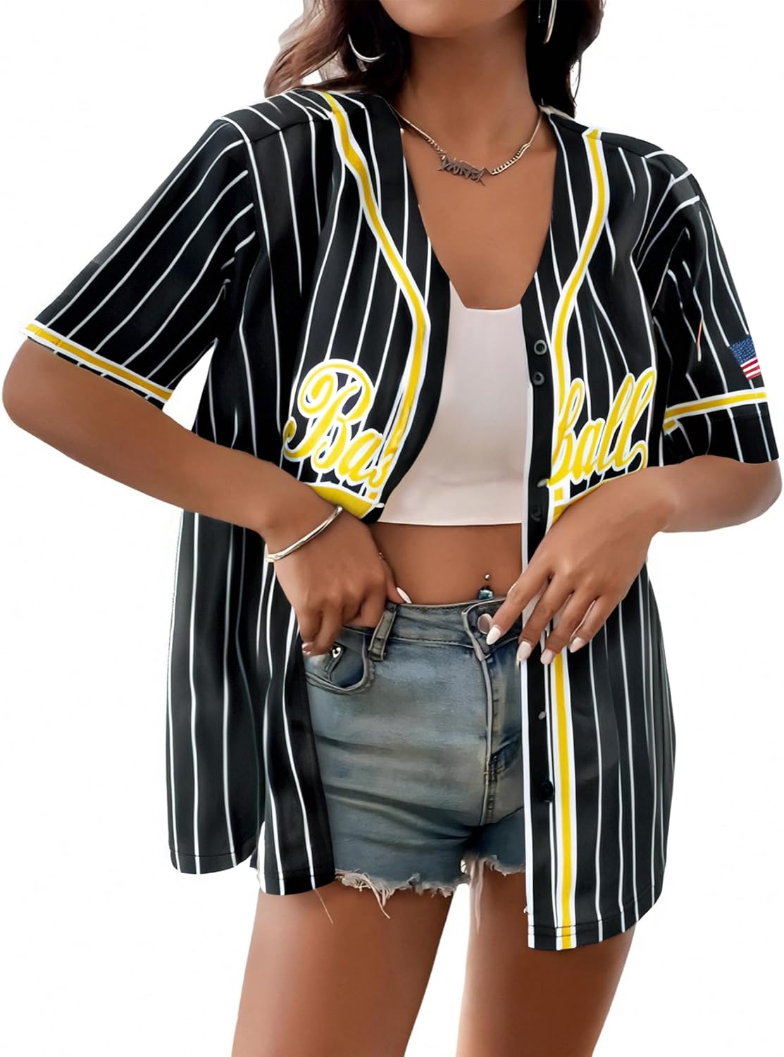 Baseball Shirt Jersey Women Baseball Player T-Shirt Game Day Fan Graphic Tees Button up Short Sleeve