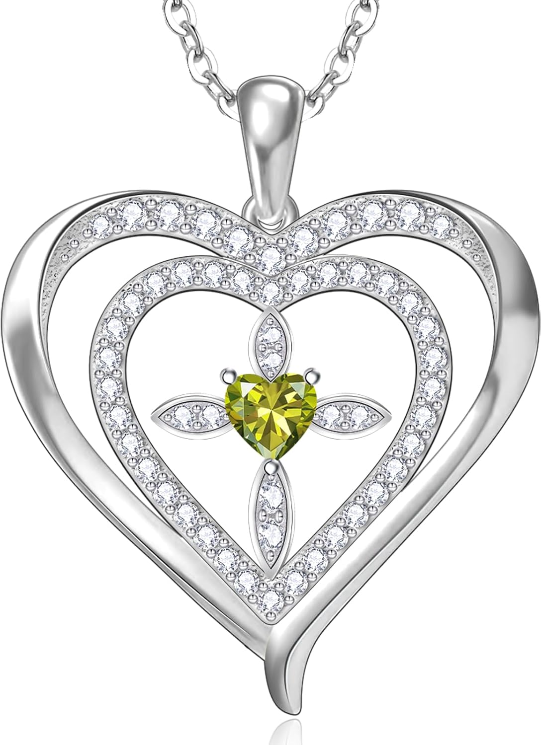 RIVIKO 925 Sterling Silver Cross Birthstone Necklace for Women,Love Heart Pendant Necklaces Trendy,Valentines Day Gifts for Her,Anniversary Jewelry Birthday Gifts for Women Wife Mother Friend