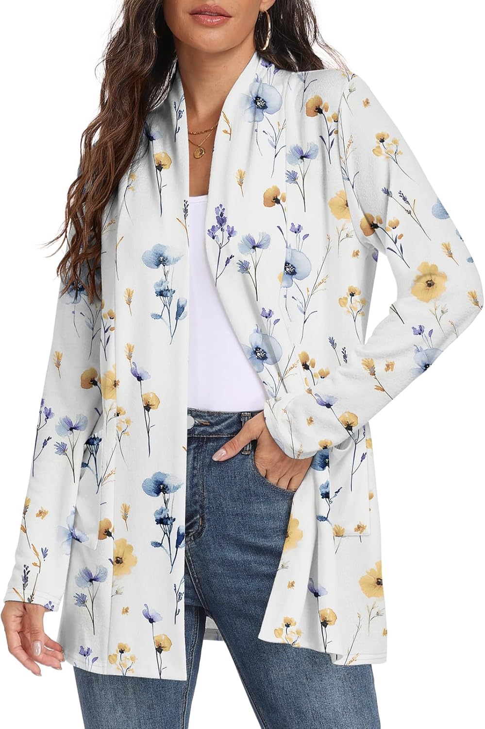 Womens Long Sleeve Lightweight Cardigan Open Front Casual Draped Cardigans with Pockets