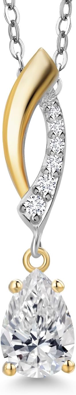 Gem Stone King Teardrop Pendant Necklace for Women | 925 Silver and 10K Yellow Gold | Gemstone Birthstone and White Lab Grown Diamond | Pear Shape 7X5MM | With 18 Inch Chain