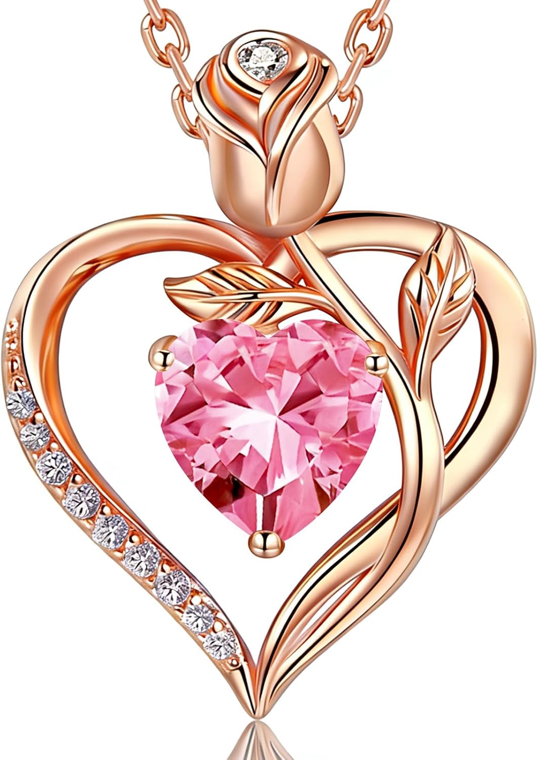 1.2CT Rose Heart Necklace Option of Moissanite or Lab-Grown Sapphire Ruby Emerald&More Necklace for Women Birthstone Girlfriend Necklace S925 Sterling Silver 18K White/Rose Gold Plated D Color VVS1 Gift for Wife Mother Daughter for Birthday Anniversary Valentine's Day Engraved 'I LOVE YOU'