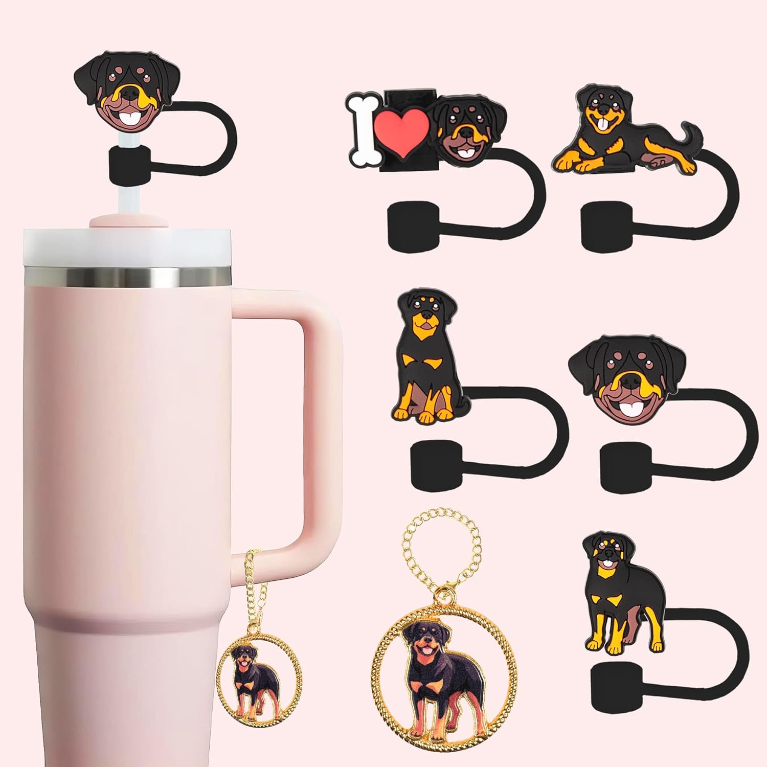 Rottweiler Straw Topper, 10mm (0.4in) Cute Dog Straw Topper, Covers for Stanley Cup - Poodle Accessories, Decor, Stuff, Things, Birthday Decoration, Gifts for Lovers, Women, Kids, Girls