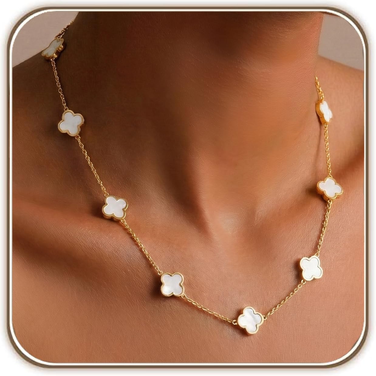 Billet-doux 18k Gold Plated Clover Necklace for Women, Perfect for Valentine’s Day, The Timelss Classic Four-Leaf Clovers Link Chain Nacklace, Adjustable size, Trendy Charm Jewelry Gifts for Her