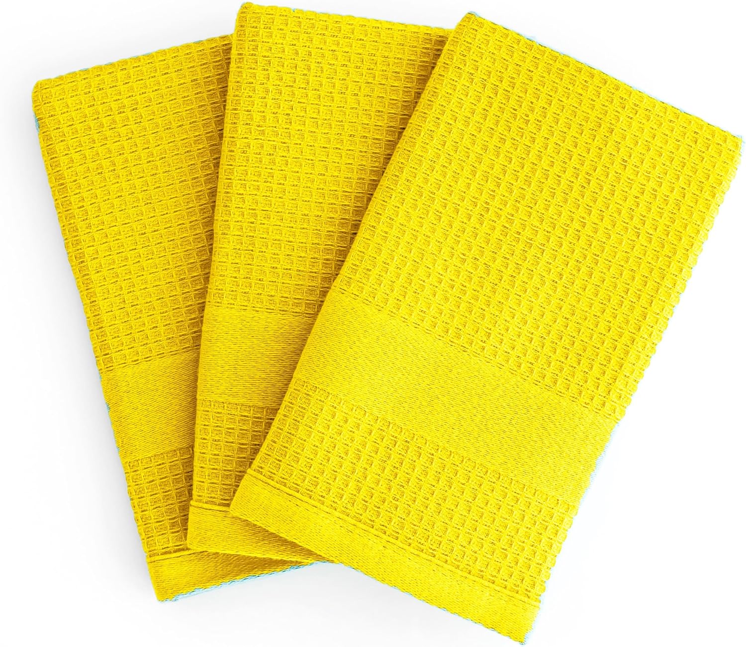 - SET OF 3 LUXURY KITCHEN TOWELS: Brighten up your kitchen with this set of three vibrant lemon yellow towels. Crafted from premium Turkish cotton, these towels add a touch of style and functionality to your kitchen.