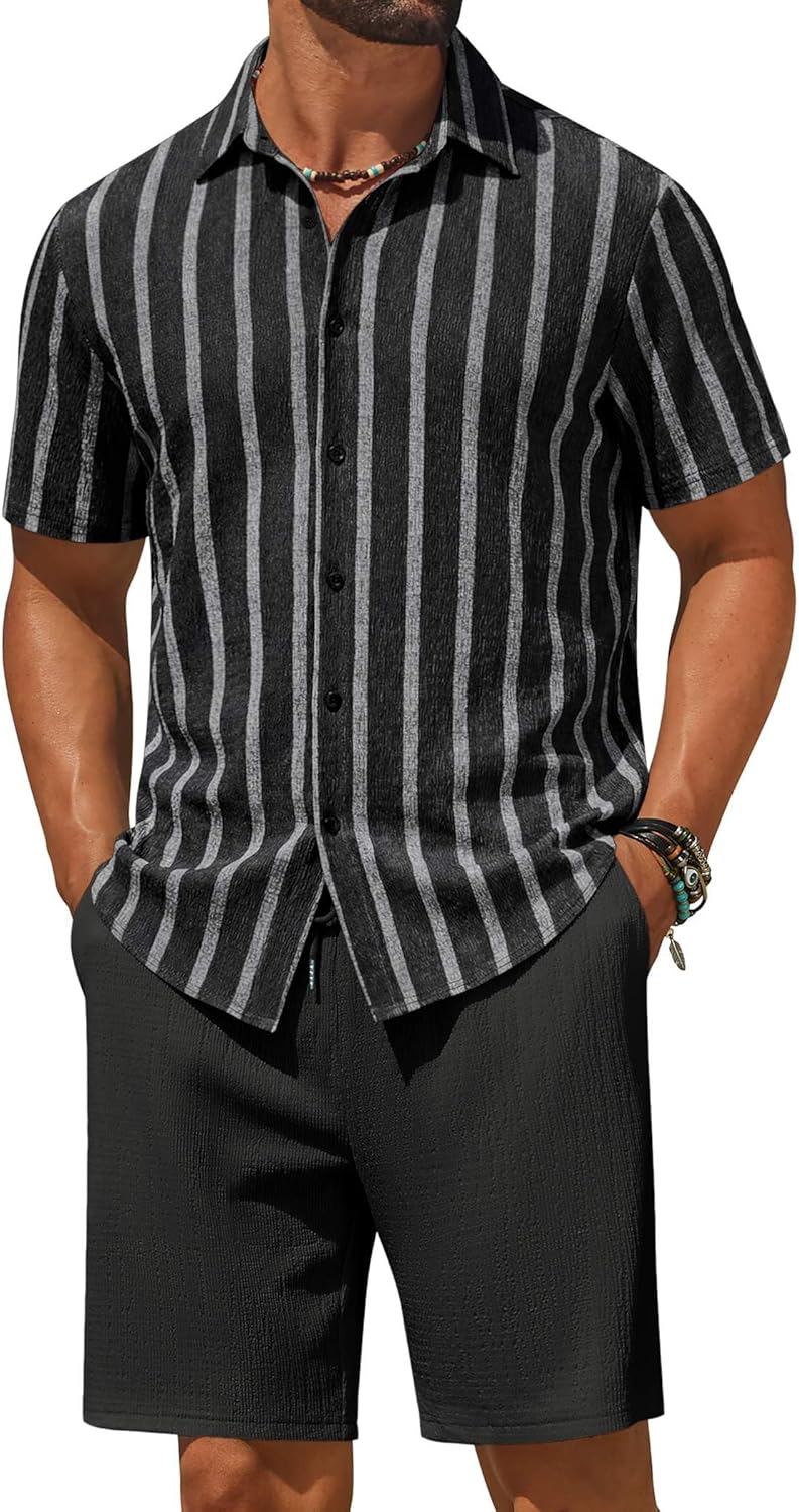 COOFANDY Men's 2 Piece Outfit Casual Short Sleeve Button Down Shirt and Beach Shorts Set Summer Vacation Outfits for Men