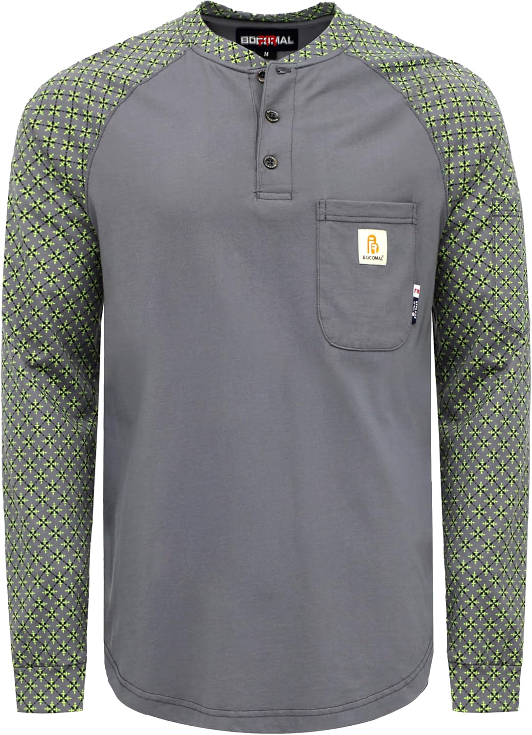 BOCOMAL FR Shirts 6oz Lightweight Flame Resistant Long Sleeve Henley Shirt Fire Retardant Workwear NFPA2112 CAT2