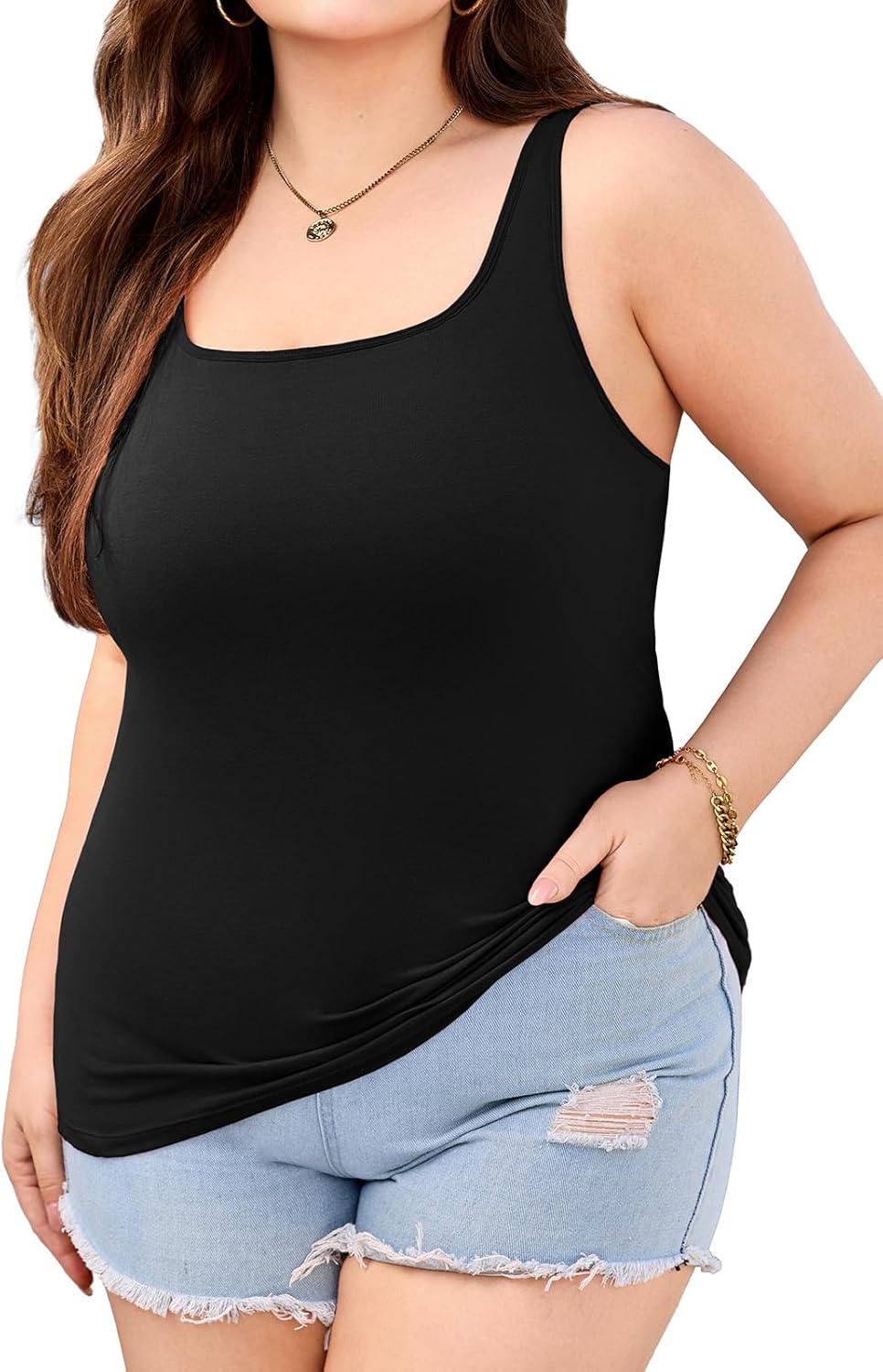 V FOR CITY Plus Size Tank Top with Built-in Bra Scoop Neck Camisole Tops for Women Adjustable Strap Cotton Camis