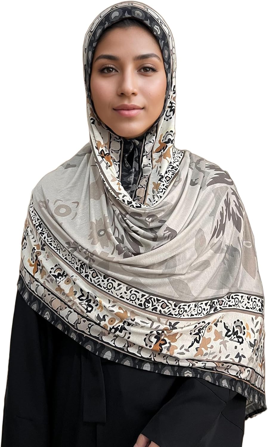 Printed Jersey Cotton Scarf for Women, Stretch Soft Hijab, Lightweight Breathable Head Wrap for All Seasons