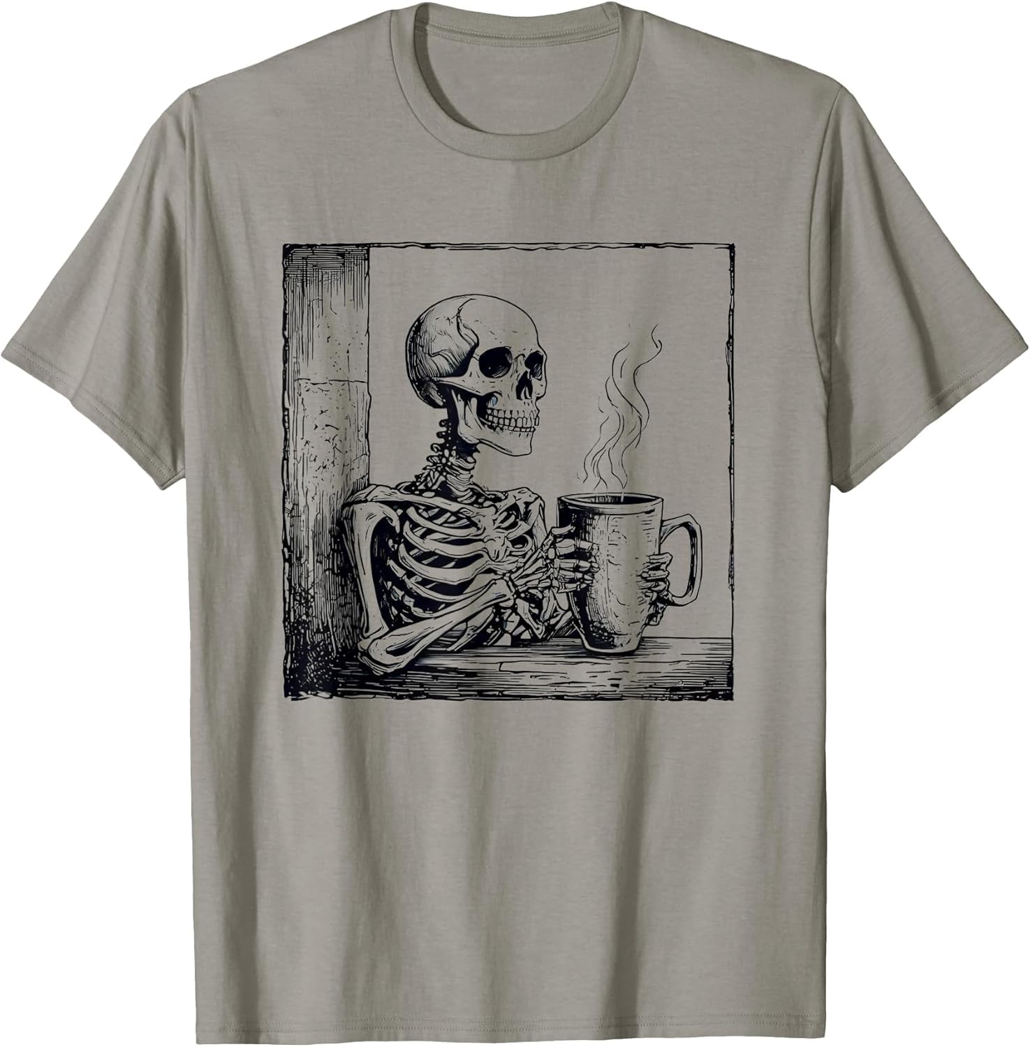 Coffee Drinking Skeleton Skull Halloween T-Shirt