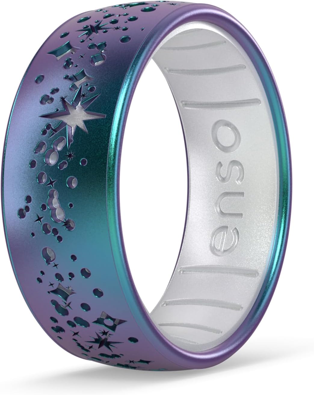 Enso Rings Etched Classic Silicone Rings - Etched Space Collection - Comfortable and Flexible Design