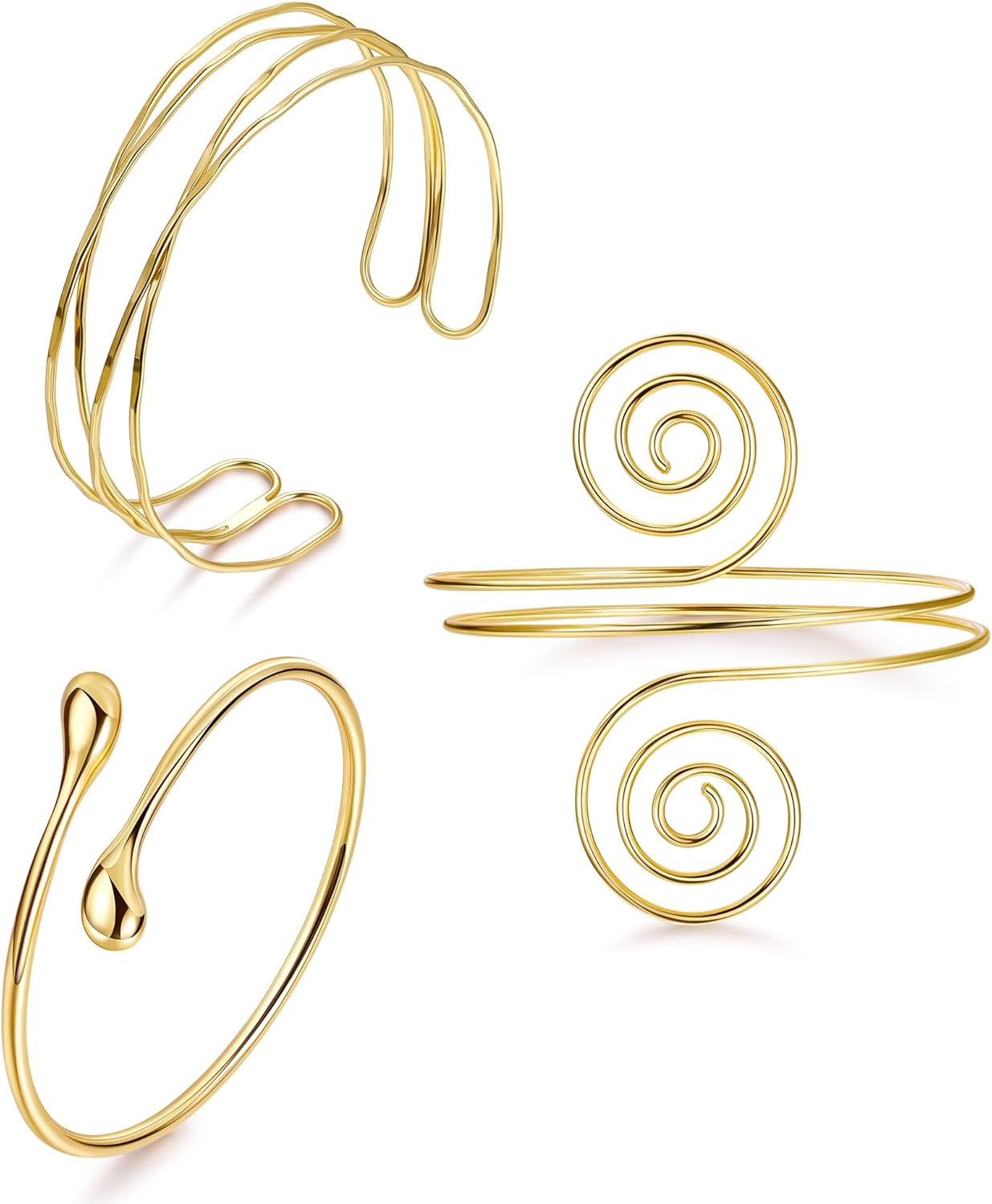 3Pcs Arm Cuff for Women Open Upper Arm Cuff Bangle Armlet Gold Silver Adjustable Armband Arm Bracelet Set