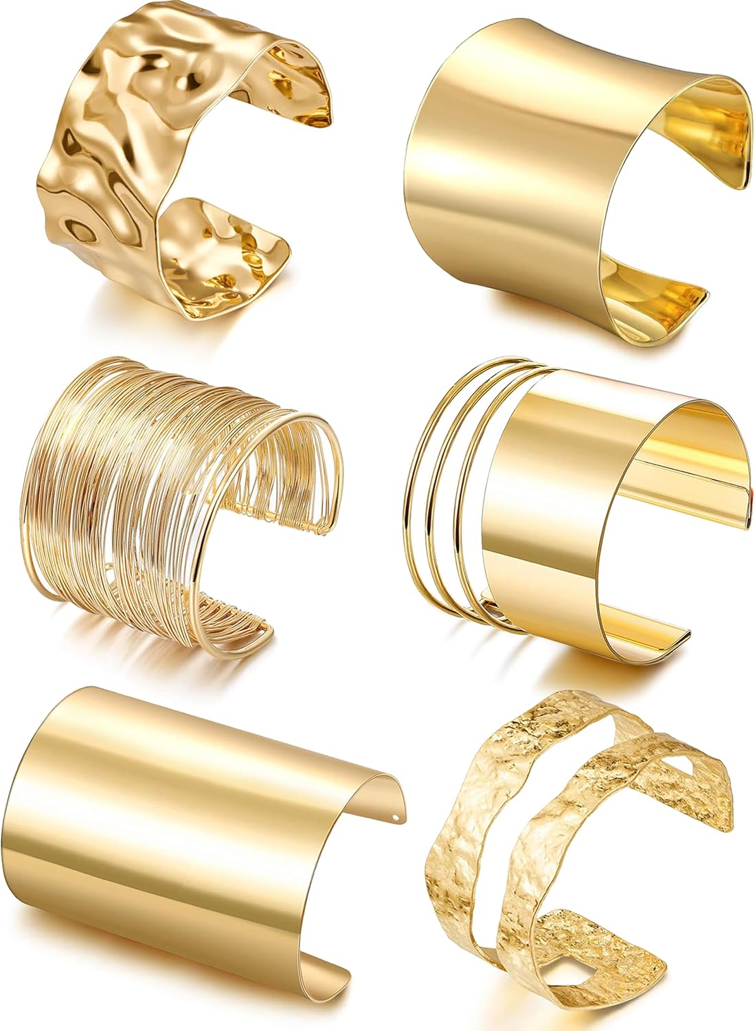 6 Pcs Chunky Golden Cuff Bracelets for Women Open Adjustable Arm Bracelet Golden Wrist Cuff Wrap Bracelet