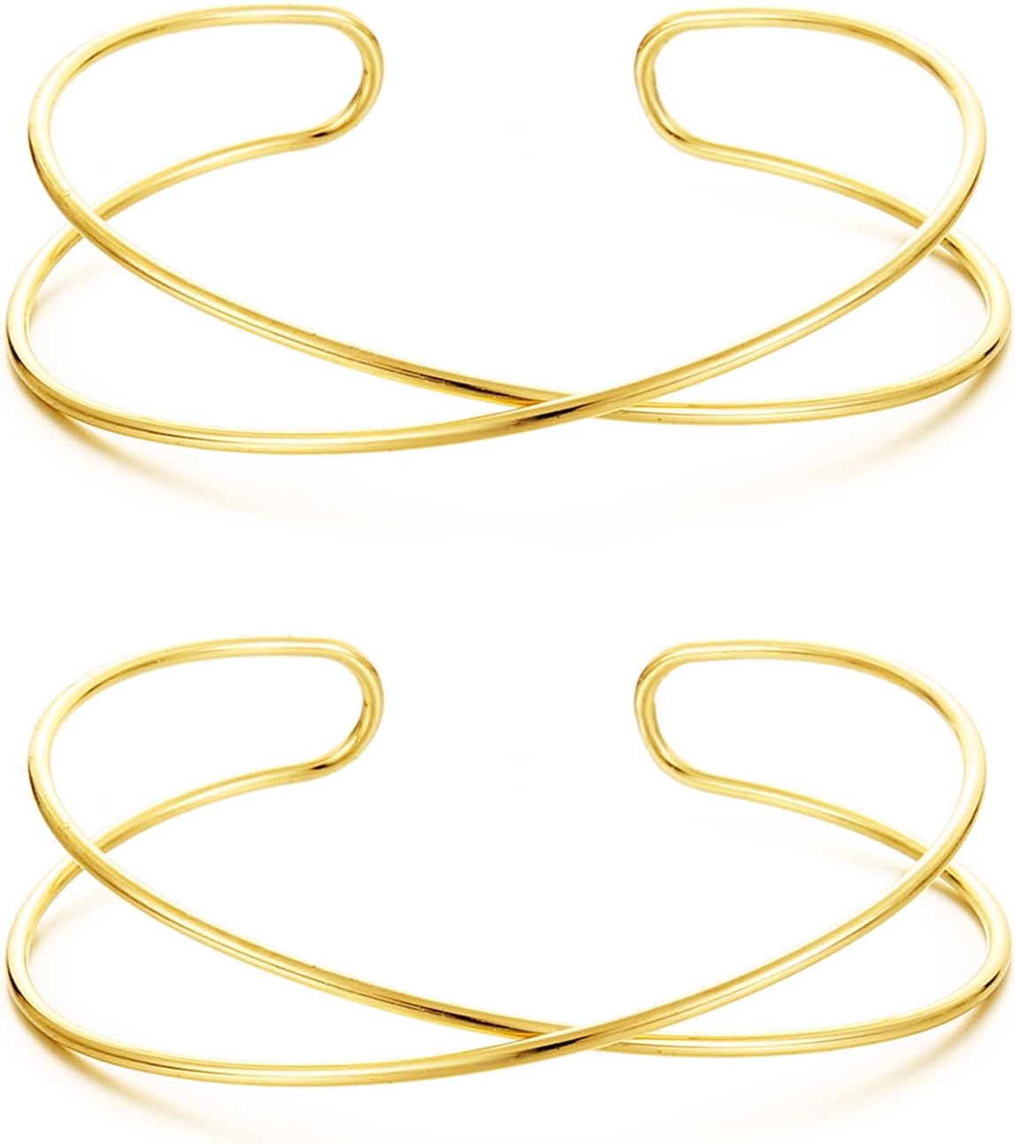 BOMAIL 2Pcs Gold Arm Cuff Bracelets for Women Open Adjustable Upper Arm Bangle Adjustable Coil Swirl Armlet Armband Set Minimalist Upper Arm Cuff Jewelry