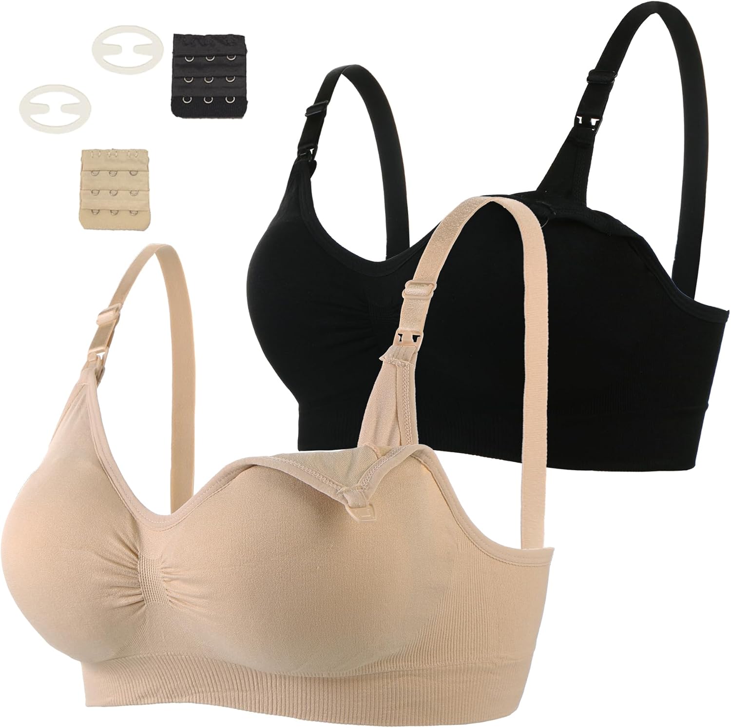 2 Pack Nursing Bras for Breastfeeding Maternity Bra Breastfeeding Wirefree Seamless Pregnancy Bralette for Womens