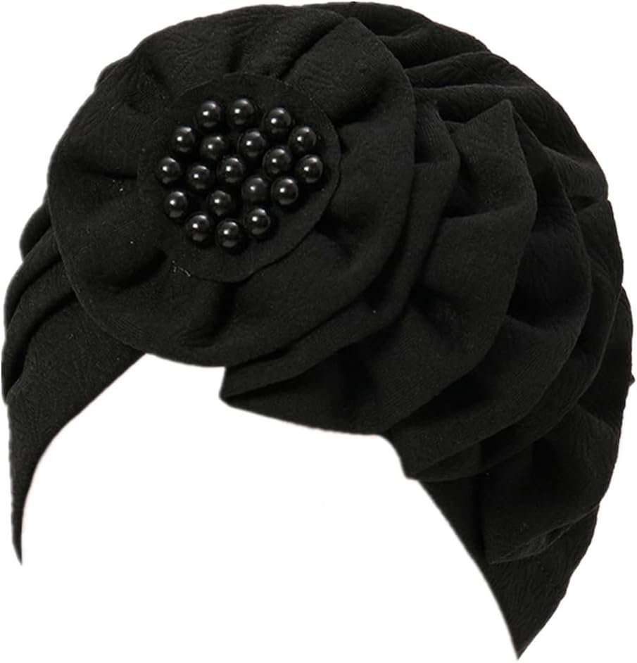 Chemo Turban Caps for Women - Bead Flower Solid Headwear Hats Pre Tied Headwraps for Cancer Patients