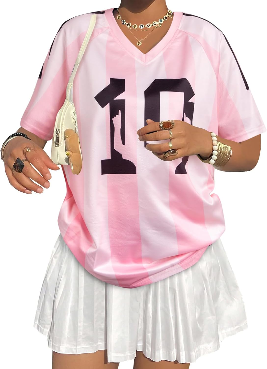 Oversized Jersey Shirts for Women Argentina Jersey Brazil Shirt Pink Soccer Mom Tshirts Y2k V Neck Short Sleeve Top