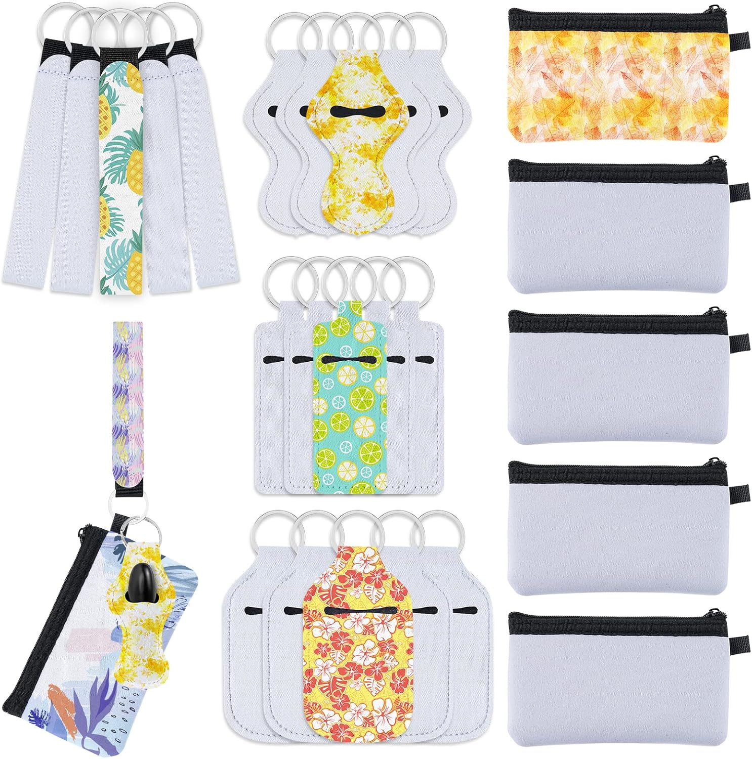 KKUYT 25 PCS Sublimation Blanks Wristlet Keychain Set, Sublimation Blank Set with Sublimation Lanyard, Lipstick Holder Keychain,Makeup Pouch, Travel Bottles Keychain Holder for Heat Transfer DIY Craft