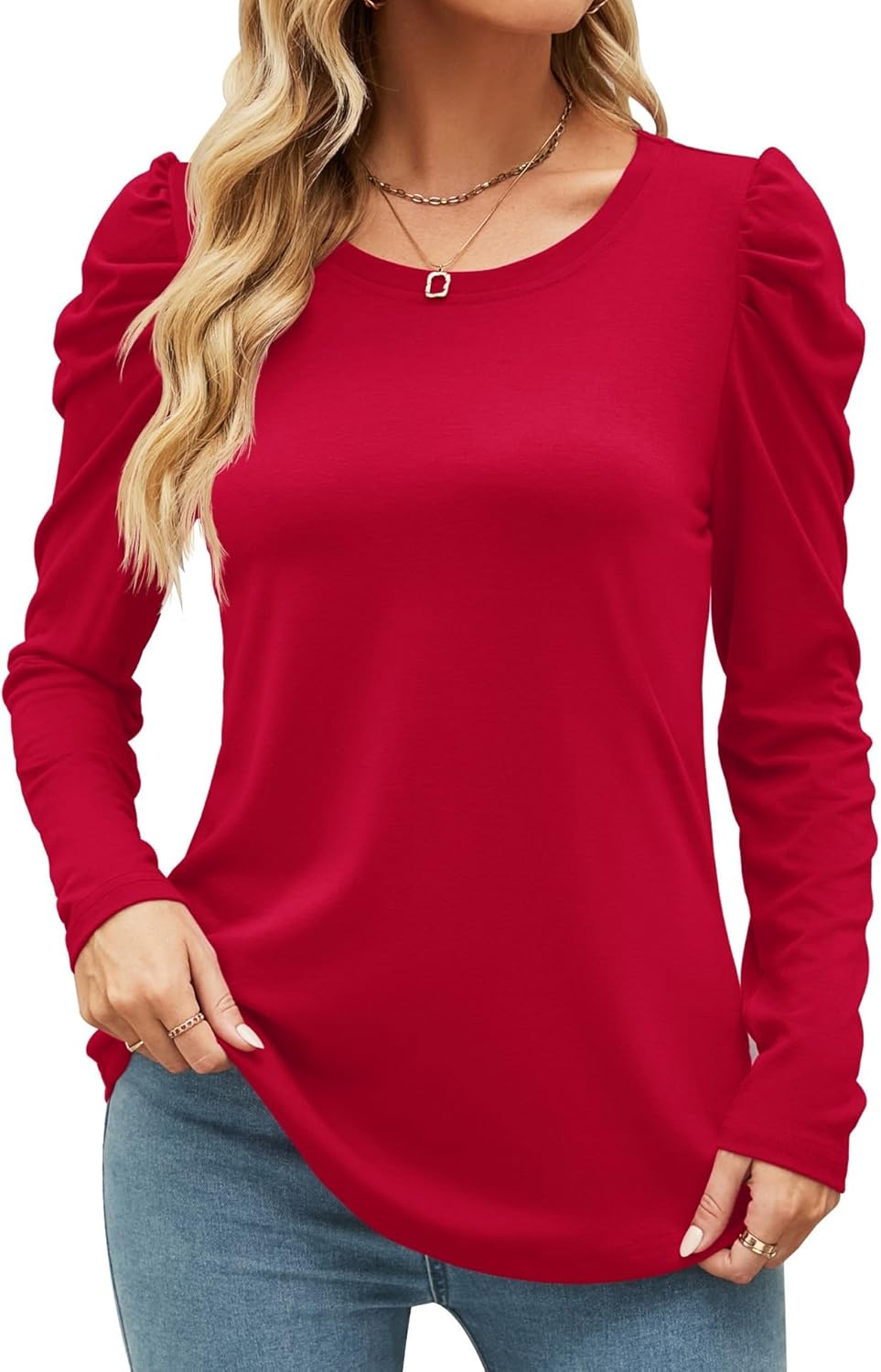 Ivicoer Women's Puff Sleeve Crew Neck Tunic Tops Casual Cute Loose Fit T Shirts Soft Work Floral Print Blouses S-XXL