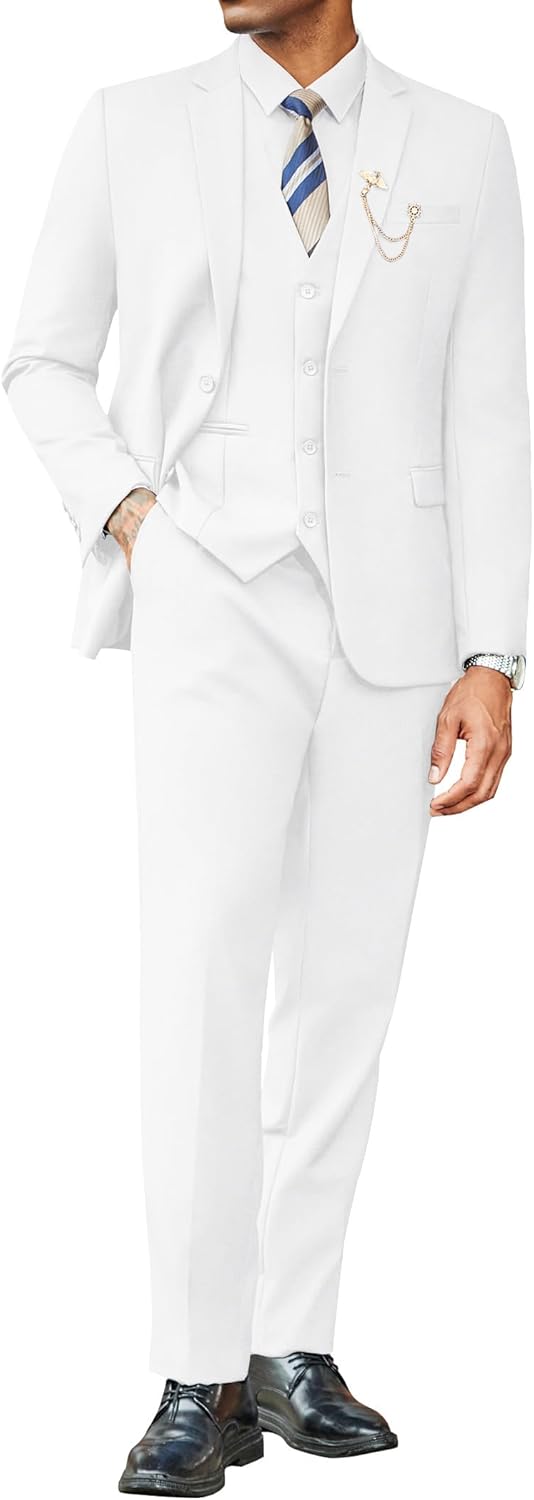COOFANDY Men's 3 Pieces Suits Classic Fit 2 Buttons Dress Suit Set Wedding Business Dinner Prom Jacket Vest Pants