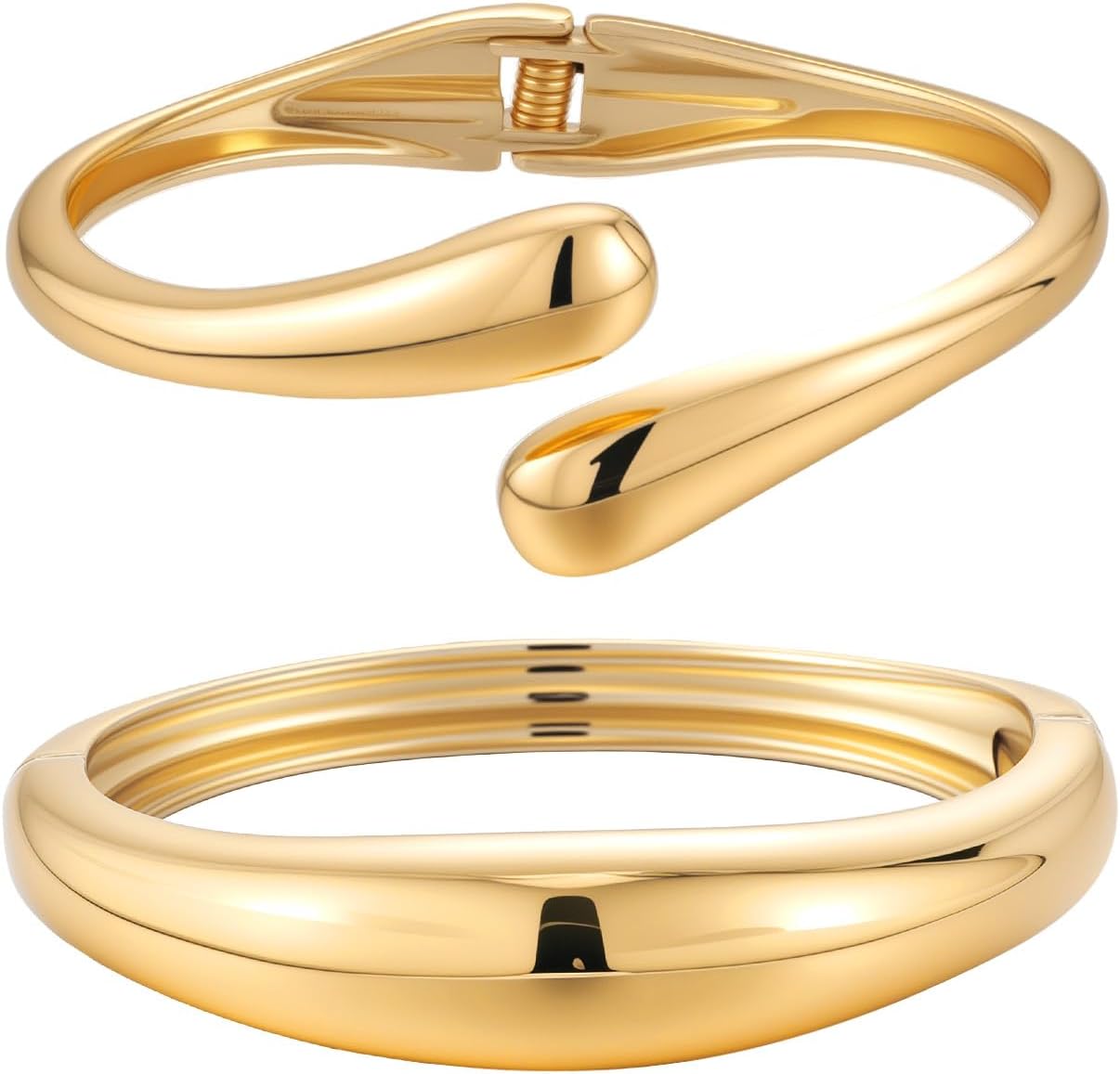 Yowivon Gold Bangles Bracelet for Women, Irregular Chunky Gold Bracelet Teardrop Wave Twisted Hinged Open Bangle Bracelets, Non Tarnish 18K Gold Plated Thick Cuff Bracelets Trendy Jewelry Gifts