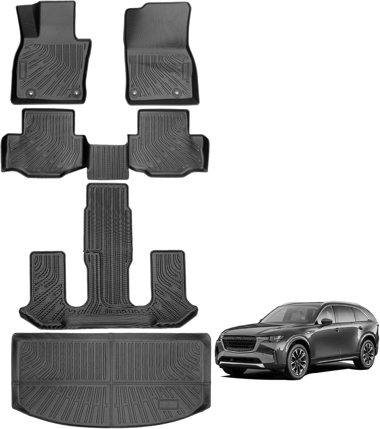 Floor Mats & Cargo Liner for 2024 2025 Mazda CX-90, 6&7 Seater 2nd Row Captain Seat or Bench Seat, Heavy Duty All-Weather Car Trunk Mats for Mazda CX-90 Accessories