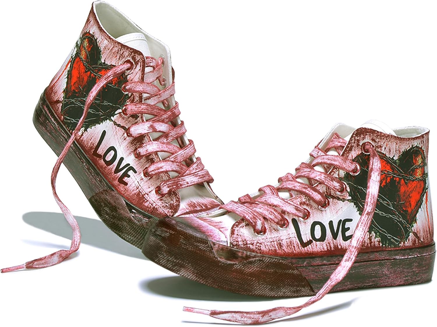 Women's Fashion Sneakers Men's High-Top Heart & Love Graffiti Design Casual Street Style for Everyday Wear