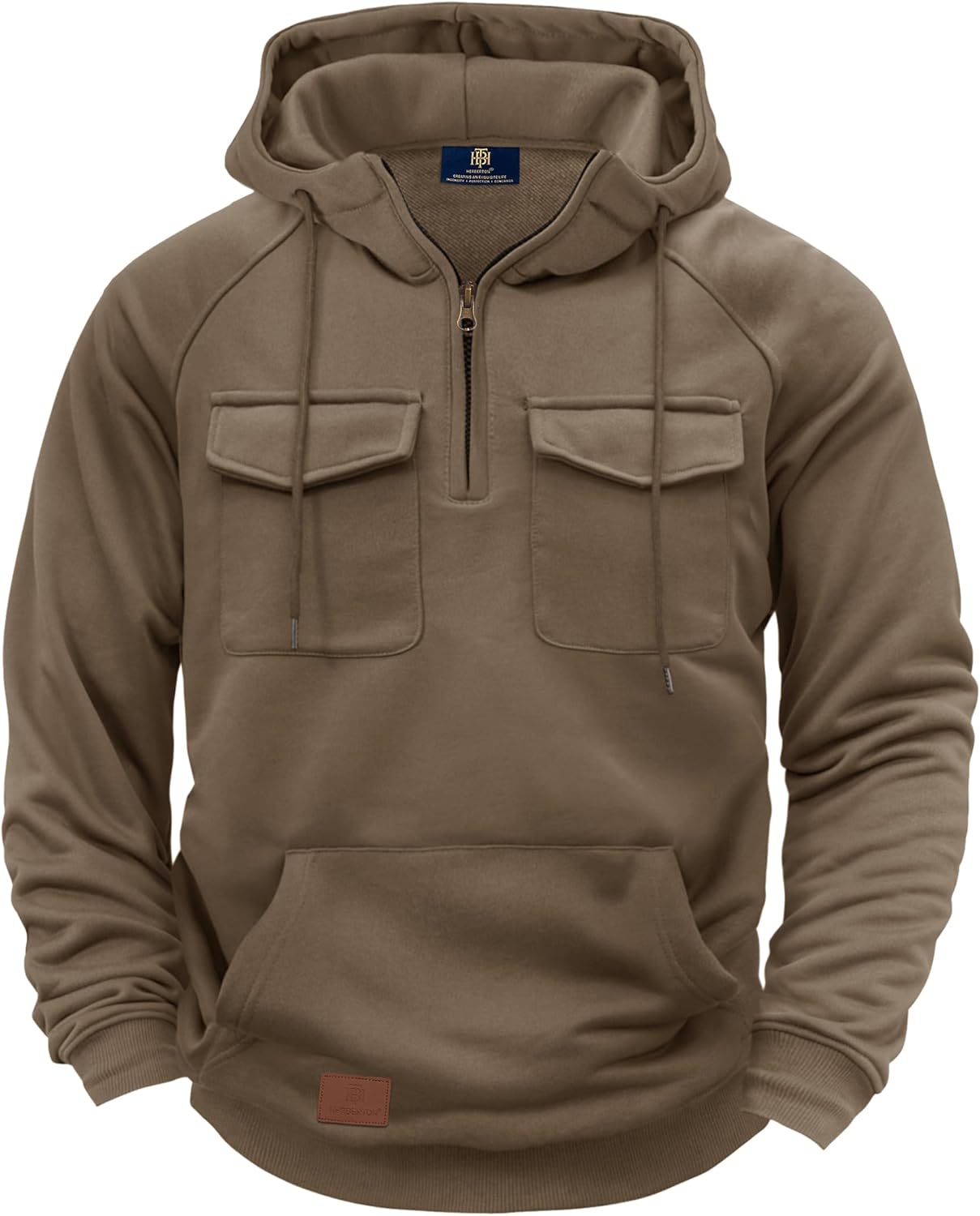 Men's Warm Casual Hooded Shirt New Cozy Hoodie Durable Versatile Classic Heavyweight Utility Tactical Pocket Longsleeve Running 1/4 Zipper Sport Loose Fit Pullover Khaki L
