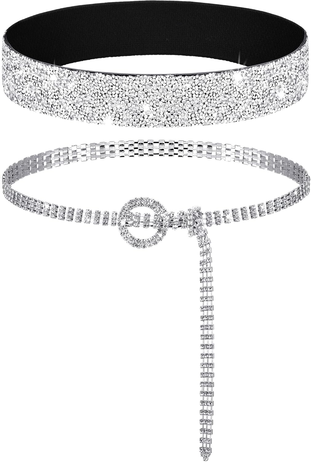 Pangda 2 Pcs Women Stretchy Rhinestone Dress Glitter Belts O Ring Buckle Bling Diamond Belts for Women Shiny Party