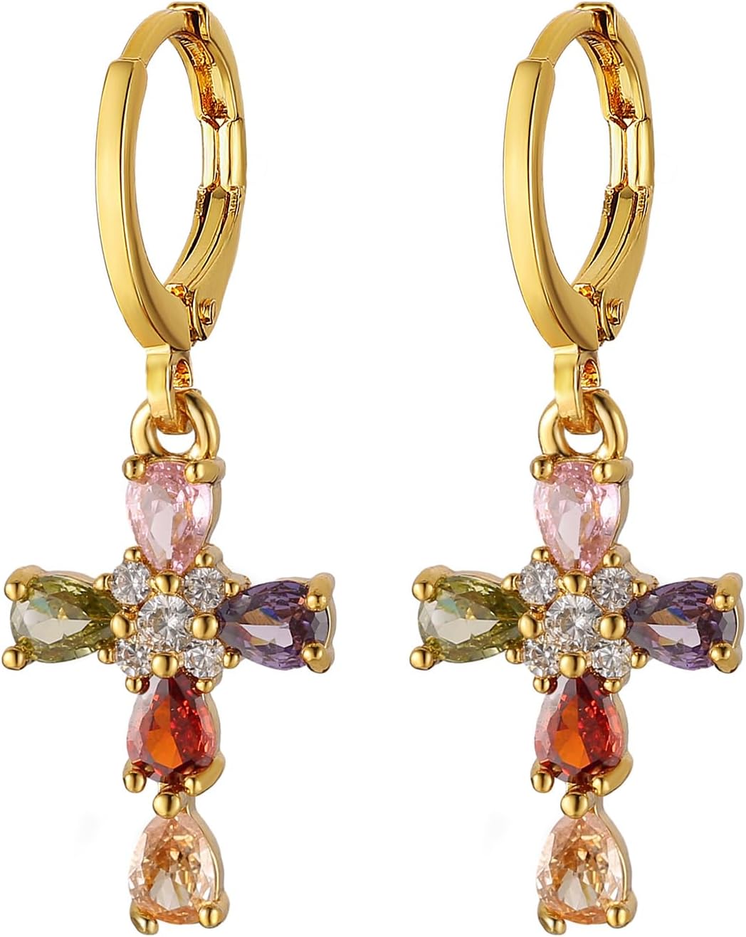 HZMAN Cross Earring for Women 14K Gold Plated Hypoallergenic Dangle Hoop Earrings Dainty Crystal Cubic Zirconia Earrings