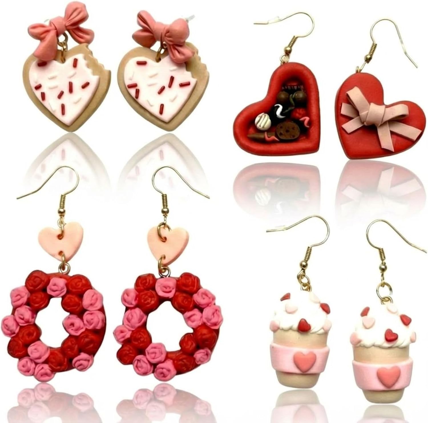 Cunno 4 Pairs Cute Love Earrings for Women Polymer Clay Earrings Handmade Heart Jewelry Gifts for Mother Mom Wife Accessories(Valentine Day)