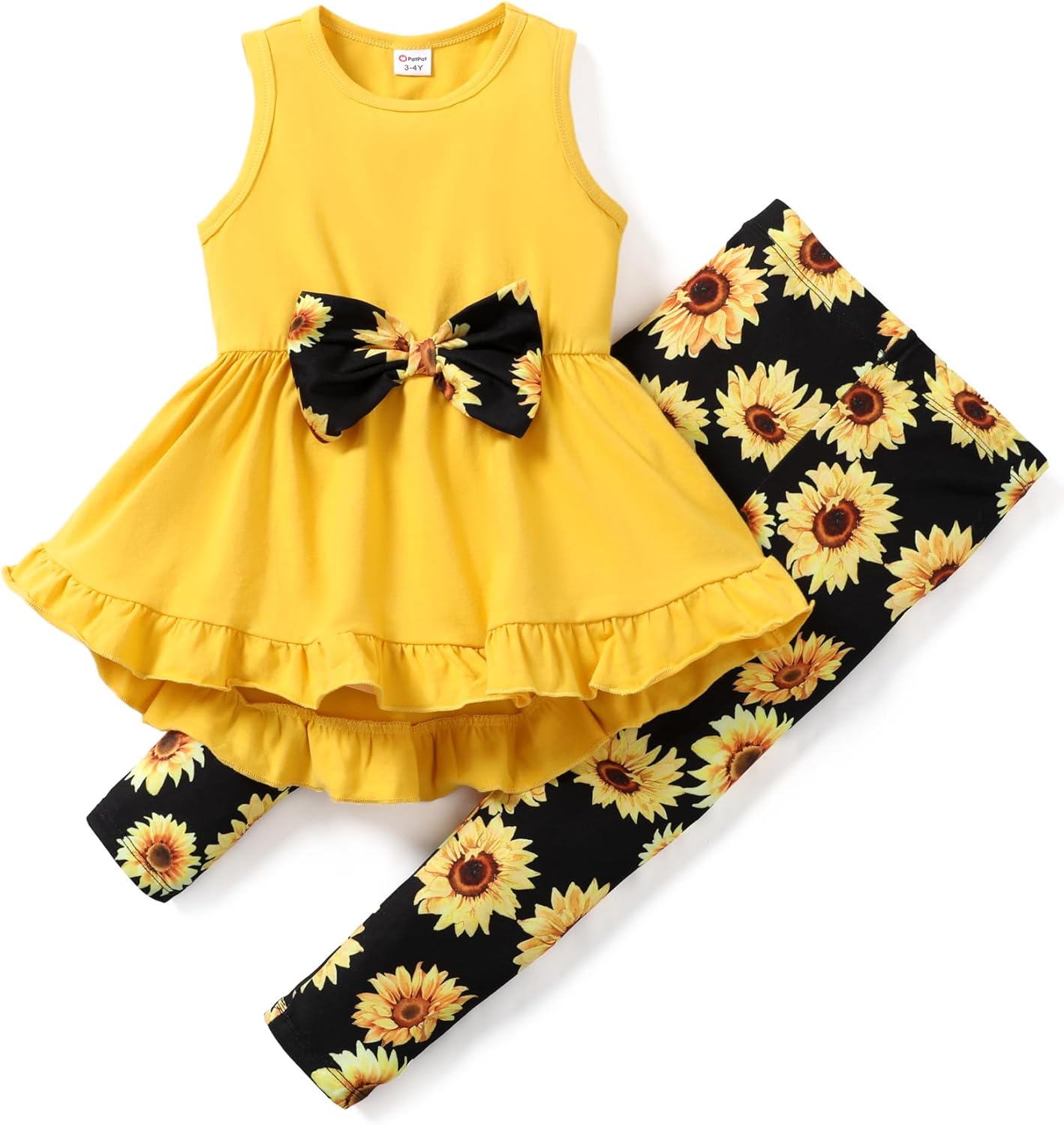 PATPAT Toddler Girl 2 Piece outfits Sleeveless Ruffle Hem and Floral Pants Leggings Set for Girls