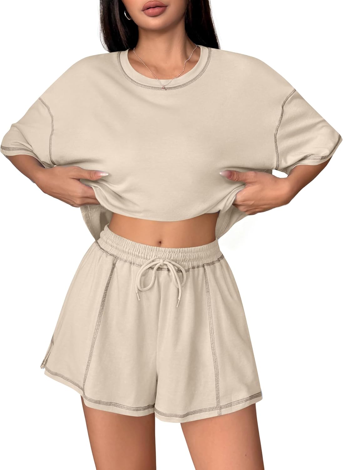 Remidoo Women’s 2 Piece Pajama Set Short Sleeve Crop Top and Shorts Lounge Sets Summer Sleepwear