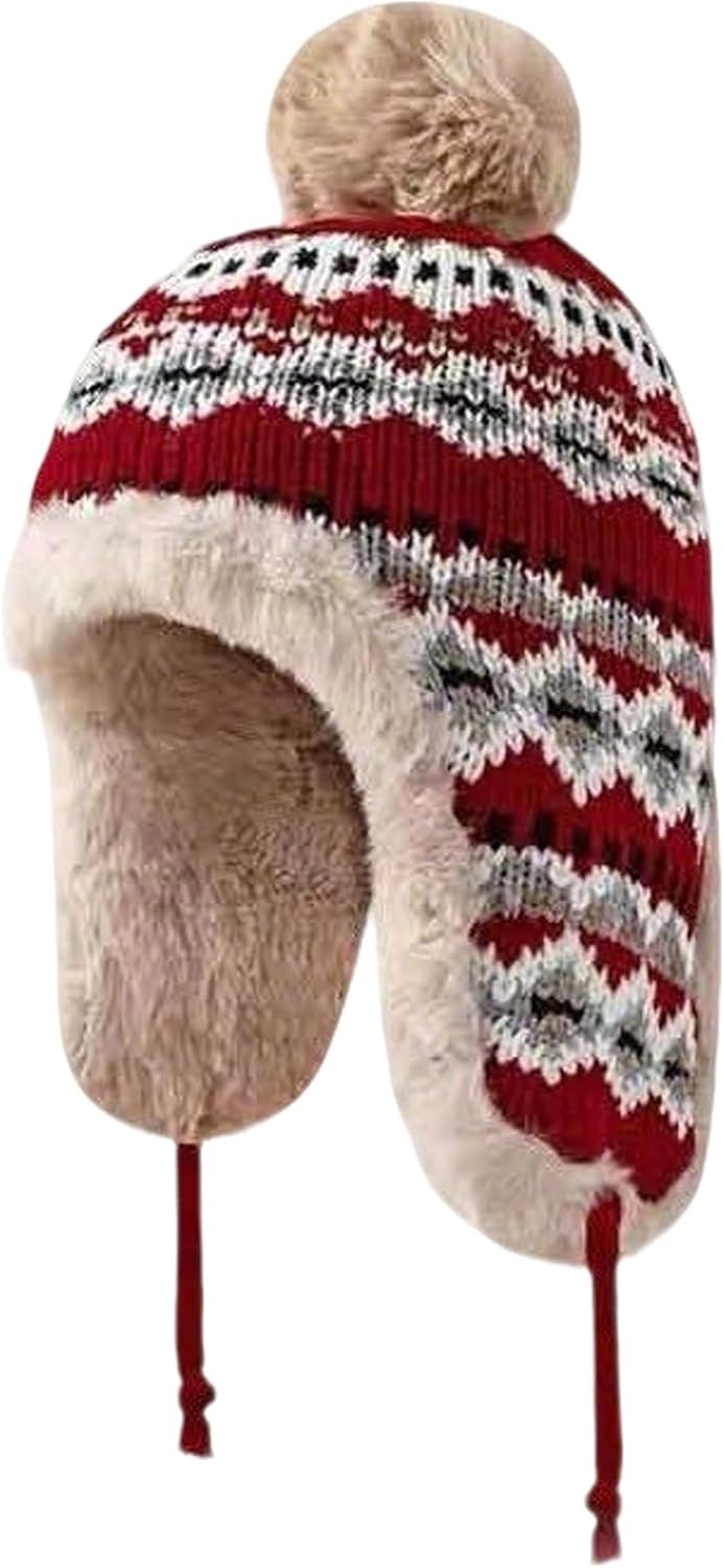 haozaikeji Women Winter Trapper Hat Faux Fur Knit Beanie Hat Thermal Earflap Outdoor Cap Pompom Hats Ushanka Hats