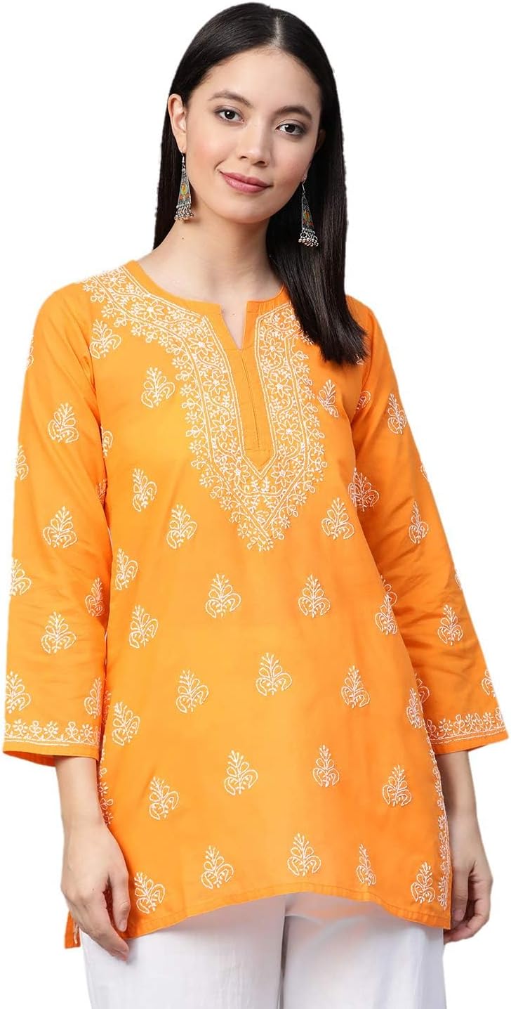 Ada Hand Embroidered Indian Clothing Chikankari Women's Cotton Top Tunic Shirt Kurti A210717