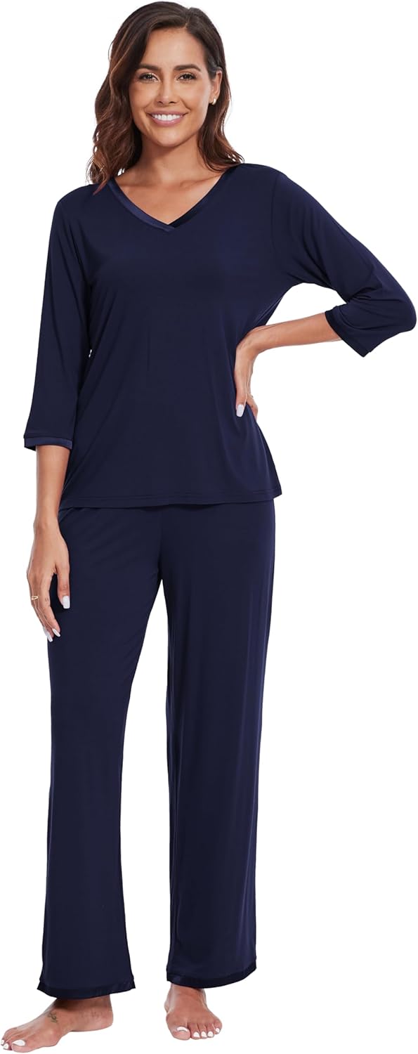 WiWi Womens 3/4 Sleeve Pajamas Set Soft Top with Pants Lightweight Viscose from Bamboo Sleepwear Pjs S-XXL