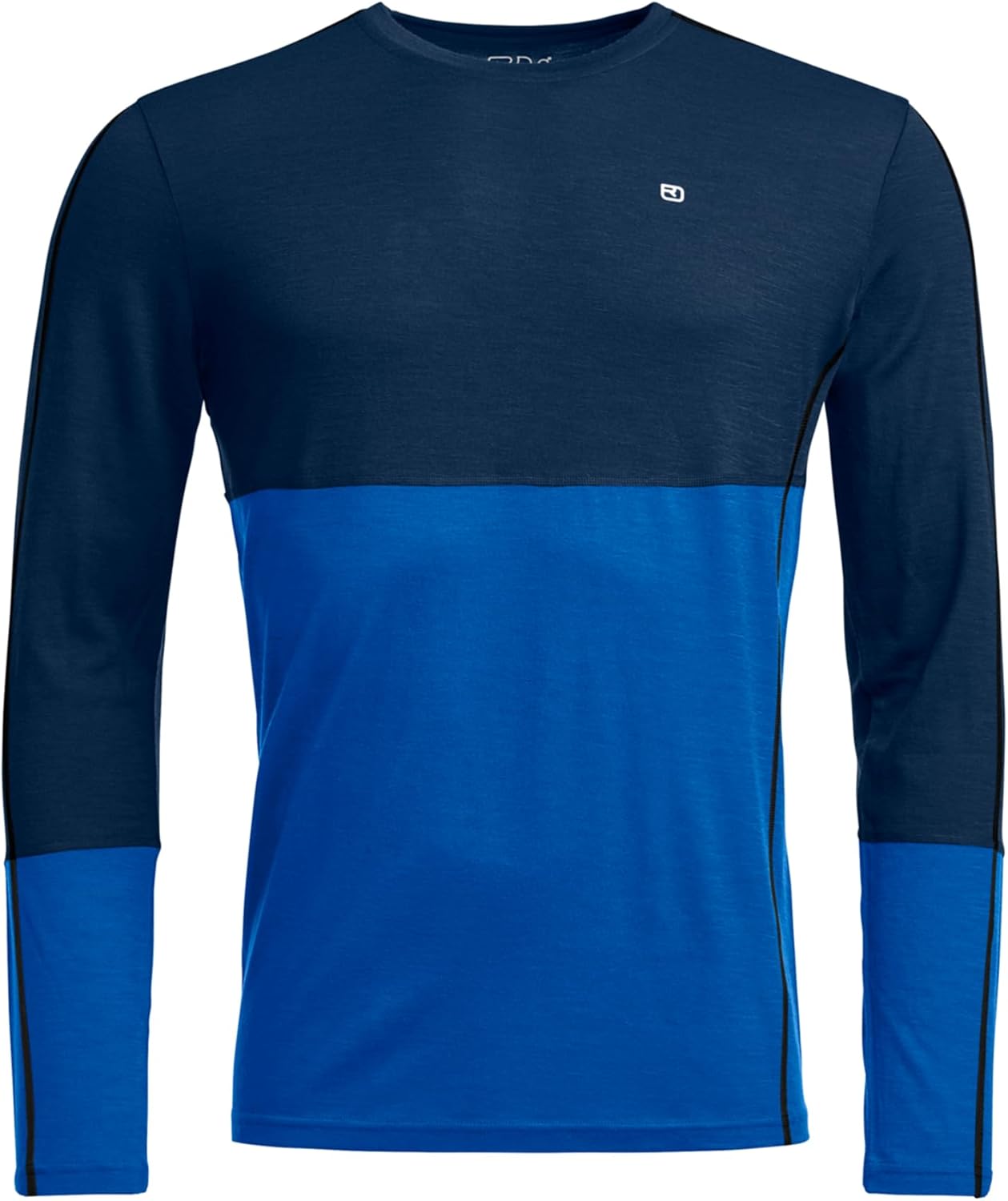 Ortovox Men's 185 Rock'n'Wool Long Sleeve Base Layer, Soft Breathable Merino Wool Base Shirt for Winter Touring & Skiing - Deep Ocean - L