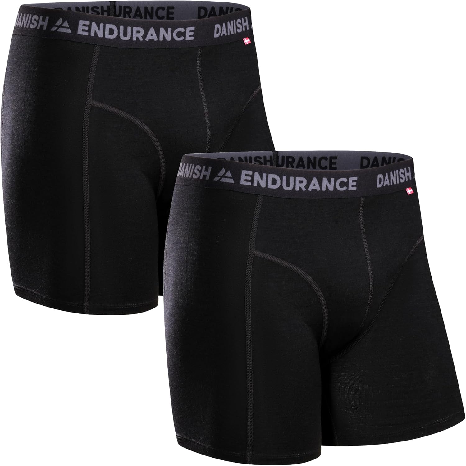DANISH ENDURANCE Men's Merino Wool Boxer Briefs (1 or 2-Pack) – Odor-Resistant, Breathable & Sweat-Wicking, Optional Fly