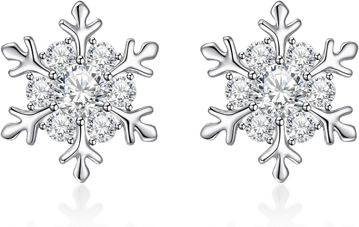 EVER FAITH Holiday Jewelry 925 Sterling Silver Full Cubic Zirconia Snowflake Flower Stud Earrings Christmas Winter Accessories Gifts for Women