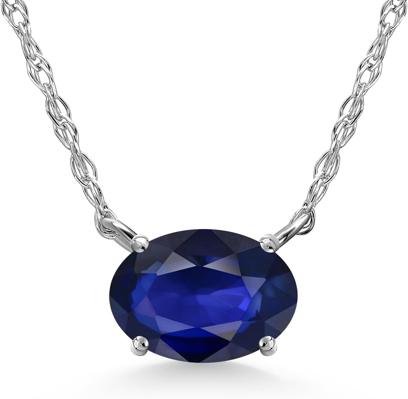 Gem Stone King 10K White Gold Blue Sapphire Pendant Necklace for Women | 0.55 Cttw | Gemstone September Birthstone | Oval 6X4MM | With 18 Inch Chain