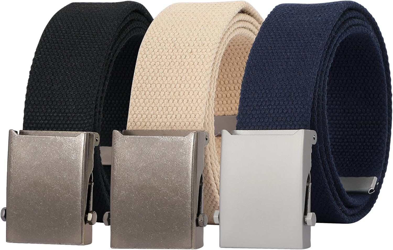 JASGOOD Canvas Web Belt for Men Adjustable Cloth Fabric Military Belt with Metal Buckle, C-Black+Beige+Blue